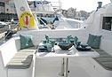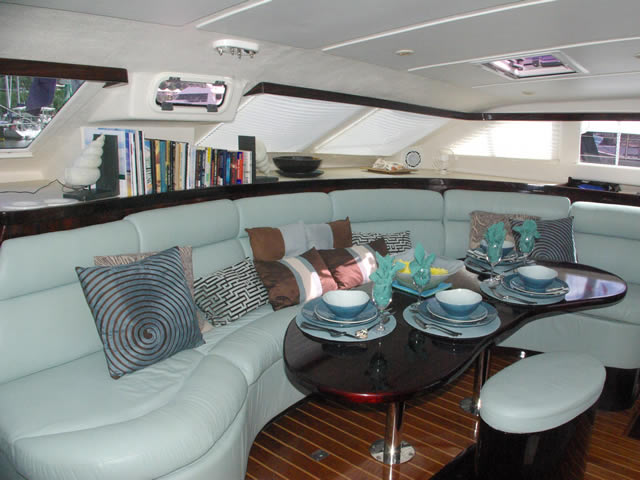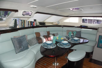 salon, shaded outside cockpit protected by a hard Bimini or sun on the